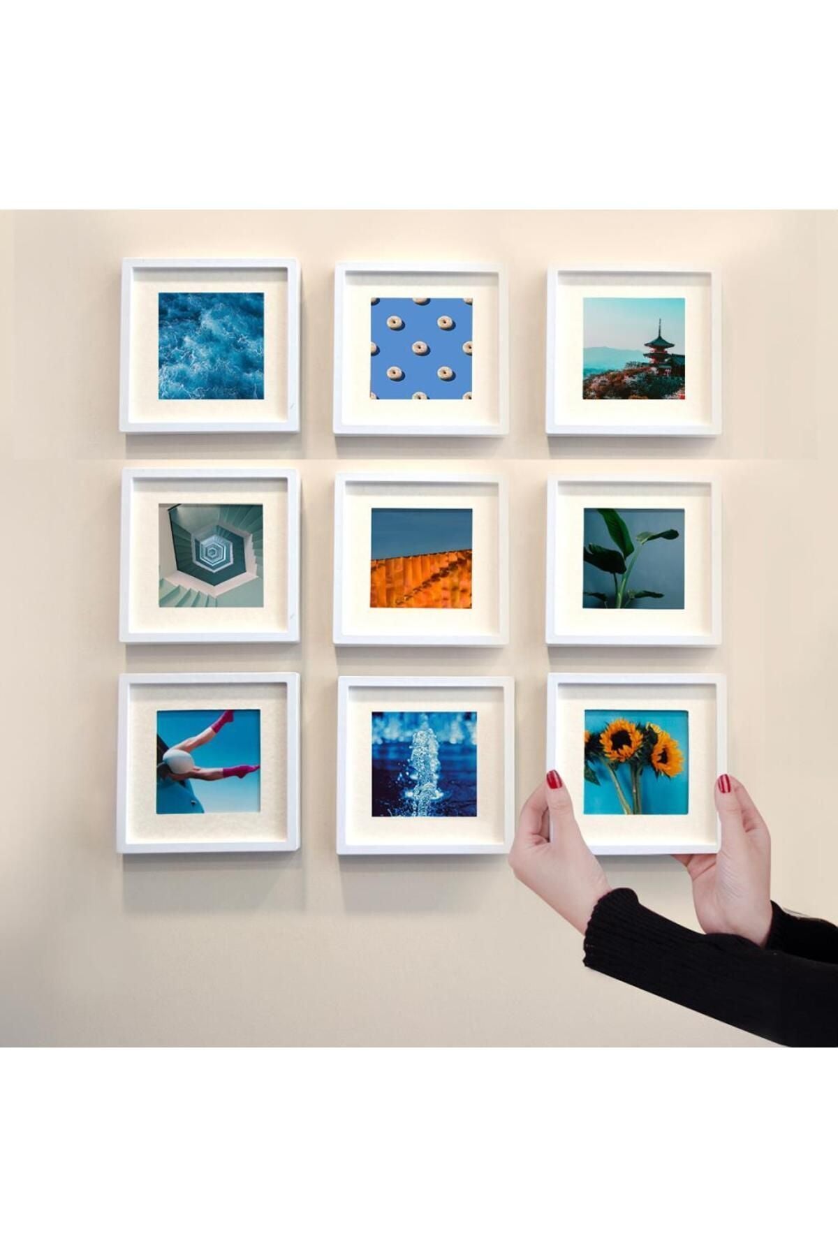 Yapışkanlı Sök-Tak Paspartulu Beyaz 14x14cm POLA Kare Fotoğraf Çerçevesi - 9'lu Paket