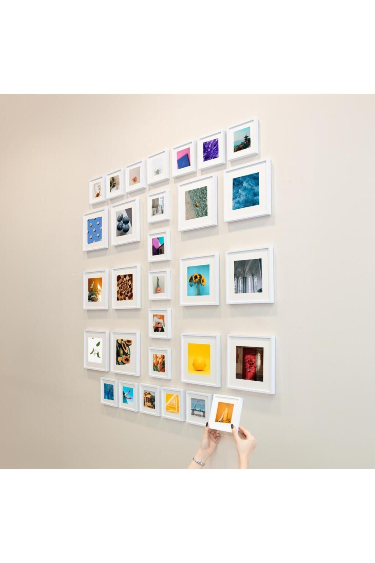 Yapışkanlı Sök-Tak Paspartulu Beyaz Kare Fotoğraf Çerçevesi - 30'lu Paket
