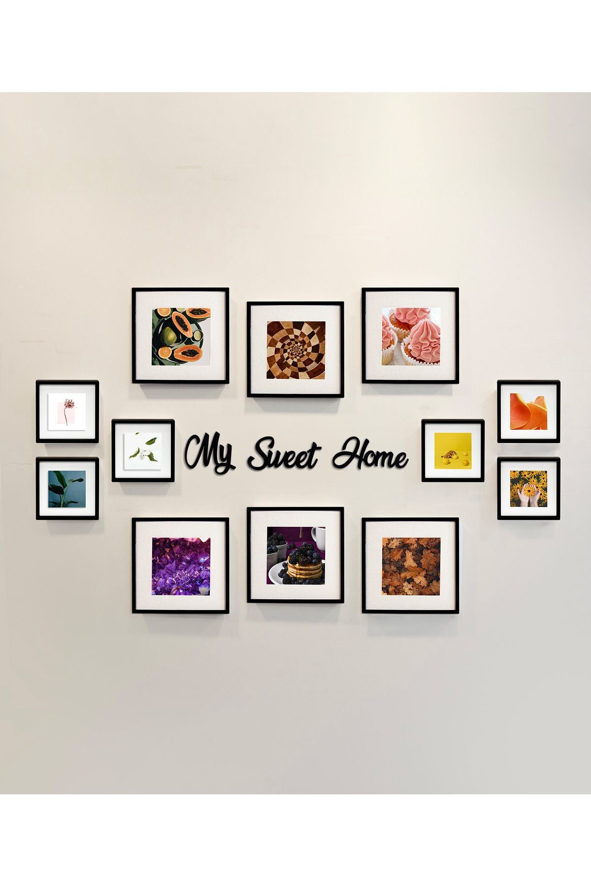 Yazılı Yapışkanlı Sök-Tak Paspartulu Siyah Kare Fotoğraf Çerçevesi - 12'li Paket